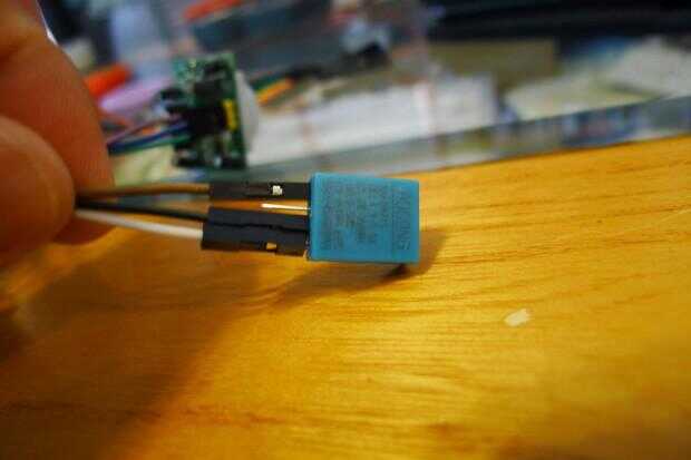 El sensor de temperatura y humedad que estoy usando es un sensor digital, número de modelo DHT11. Es un sensor común y cuesta aproximadamente 3 dólares. Es generalmente azul. Hay una versión un poco más exacta del sensor, el DHT22, que es generalmente de color blanco. Si usted quiere usar que uno en su lugar, asegúrese de que usted quite el comentario de la declaración de definir que se encuentra en el sketch de Arduino de Sensor de Uber.