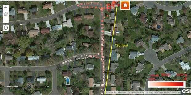 El mapa a continuación muestra el rango del transceptor inalámbrico RFM69HW utilizado en este proyecto. Produje el mapa mediante un módulo GPS conectado a un Arduino con un RFM69HW que transmite las coordenadas. Caminé por fuera con este Arduino GPS mientras otro Arduino sentado dentro de mi casa recibida coordenadas del GPS cada pocos segundos. Entonces asigna los puntos GPS. Soy capaz de enviar datos de 7 casas, a través de muchas paredes. ZigBee, bluetooth, Z-wave y el wifi no pueden hacer esto por solo $4. La frecuencia 915MHz utilizada por el RFM69 tiene mayor alcance y penetración de módulos inalámbricos de 2,4 GHz. Esta es una de las razones que estoy usando en lugar de nRF24L01 + transmisor-receptor que es popular en la comunidad de Arduino.