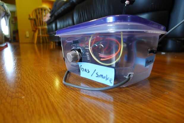 Puede utilizar cualquier envase que desee para el sensor. Usé un recipiente de comida barata y penetra los agujeros para los sensores.