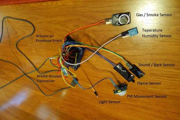 Combiné varios sensores en este nodo de Uber Sensor inalámbrico. Este sensor es alimentado a través de adaptador de USB, pero se comunica inalámbricamente a la puerta de entrada, así que usted puede poner esto donde nunca tiene acceso a una toma de corriente. Y no tienes que construir todo esto, usted puede elegir qué sensores que quieres.