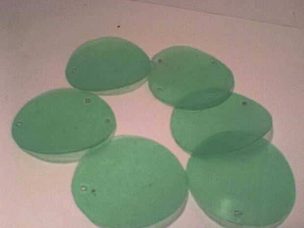 Colocar la hoja de plástico plana y trace una línea alrededor de la tapa de la botella. Necesitamos 6 círculos de estos pendientes.