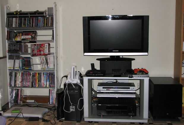 Mi medio gabinete tiene un error de diseño menores, no guarda muy bien mi DVD y juegos de video. Ahora parte de la cuestión es que mi gato le gusta escondió en la parte posterior de la bandeja superior, para que luego el perro huele el gato y piensa