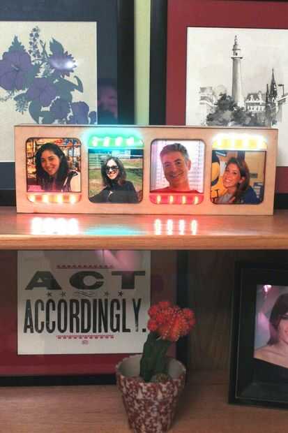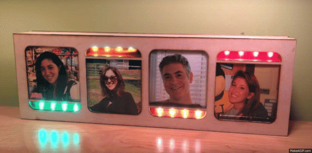 Para facilitar la comunicación, he creado el marco de imagen detección de ubicación de IoT. El concepto es simple. Cada miembro de la familia tiene una foto de sí mismos en el marco de imagen. Cada foto tiene una correspondiente tira de luces que está controlada por una aplicación que se ejecuta en el fondo del teléfono inteligente el designado miembro de la familia (sí... cada familia miembro tener un teléfono inteligente es un requisito previo para este proyecto.). Las luces están programadas para mostrar colores en un espectro que van de rojo a verde. Si la luz de un determinado miembro de la familia está rojo, significa que están muy lejos de casa. Si la luz está verde, significa que son caseros. Si las luces han sido naranja por un tiempo, pero se cuenta que poco a poco se desvanecen al amarillo, el miembro de la familia está viajando más cerca a casa y las luces seguirá a desvanecerse al verde hasta que llega a ese miembro de la familia en casa.