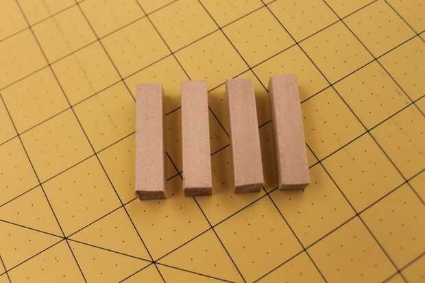Usando una sierra de mano pequeña, corte la clavija de madera donde ha marcado. Repetir hasta tener cuatro piezas.