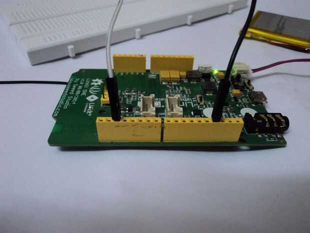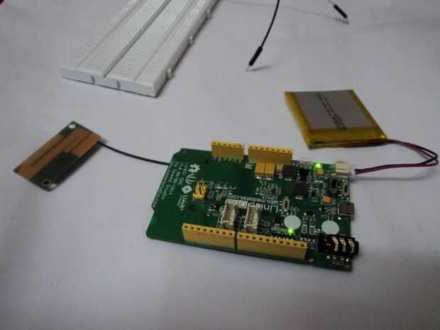 La antena GPS y GPRS a likit uno y también insertar la tarjeta sim en la ranura. Inserte una pila si quieres hacer portable. El código es:-