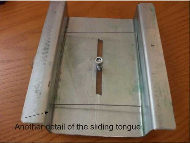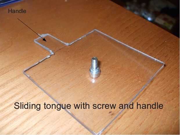 Ahora a la lengüeta deslizante: el ancho de la lengüeta debe ser del ancho exacto de la caja. La longitud: lo suficientemente largo como para dar un preciso deslizamiento pero no a ser bloqueado por las paredes de la caja.