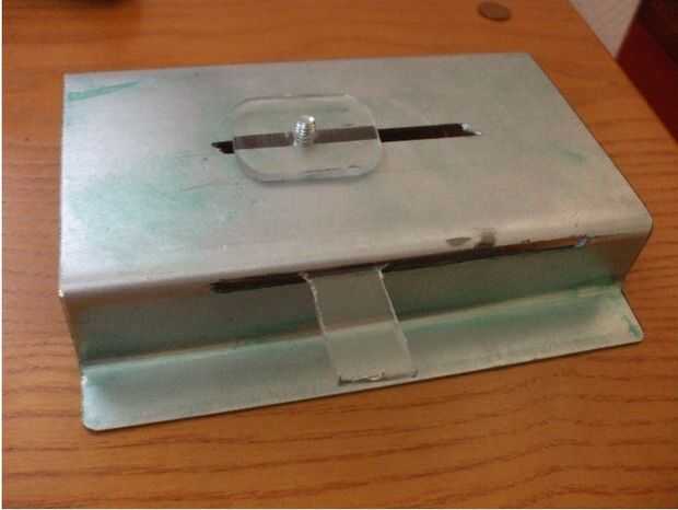 Con la lengüeta insertada en la ranura del lado de la caja, pase el tornillo a través de la lengua. El tornillo debe salir a través de la ranura superior. En la ranura superior poner en el espaciador, tornillo de la cámara en el separador (no apretado porque no resbalará fácilmente) y listo para tomar fotografías.
