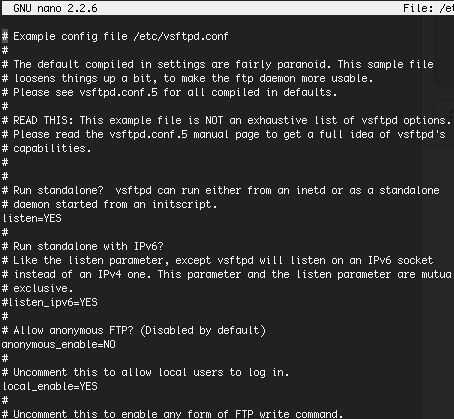 Tener que editar el fichero index.html con nano es muy tedioso así que puede que desee utilizar en lugar de FTP. Para instalarlo simplemente tipo: sudo apt instalar vsftpd entonces para permitir permisos de escritura abren el archivo /etc/vsftpd.conf , añadir o descomentar: write_enable = YES y luego tipo sudo reboot. Luego para acceder a su FTP servidor abrir un programa como FileZilla escriba su IP, usuario, contraseña y puerto y haga clic en el botón "Conexión rápida".