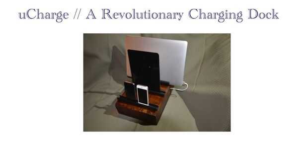 uCharge es una creación innovadora que está diseñada para principalmente satisfacer las necesidades del consumidor. Esta invención es un muelle de carga con cargadores múltiples. Fue traído a la vida por dos estudiante de primer año, Joe Hart y Thomson de Connor, quien se dio cuenta que en una era tecnológica, todo gira alrededor de usted y de sus dispositivos electrónicos. Joe y Camilo también se dieron cuenta que no todo el mundo tiene los mismos dispositivos; algunas personas sólo tienen un iPhone, mientras que otros pueden tener un iPhone, un iPad Mini o una MacBook Air. Posteriormente creó un plan de un revolucionario de carga dock que daría la libertad al consumidor y accesibilidad a los dispositivos de carga. Este revolucionario dock es simplemente una caja de madera con tubos de PVC, adaptador de alimentación, puertos de extensión, y un toque de creatividad ;) uCharge ayuda a los consumidores cargar su electrónica por él la capacidad de personalizar su muelle de carga basado en los dispositivos que tienen.