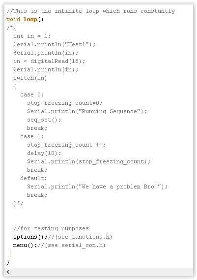 Proyecto de Robot principal tienes que comentar y descomentar el código según lo que desee. (Siga las fotos). Por ahora tenemos que estar en modo de menú.