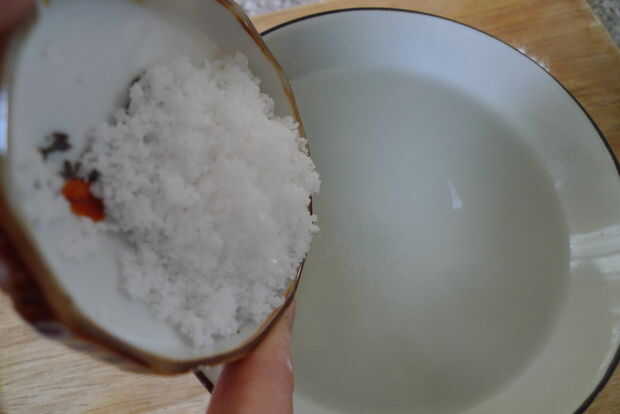 Combinar la sal y el agua, asegurándose de que todos los gránulos se disuelvan.