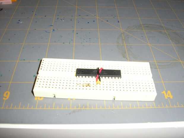 Poner el ATmega168 en el protoboard, a caballo entre el centro.