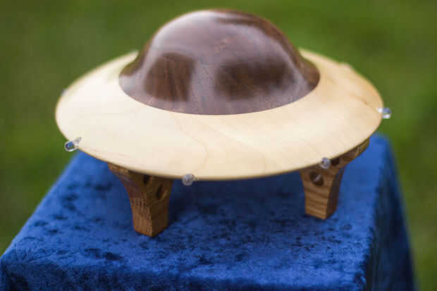 esta novedad poco UFO luz está segura de obtener un montón de atención! Se trata de una lámpara de escritorio/mesa de UFO. Hecho en el torno de nogal, arce y roble. Tiene 8 LED alrededor del perímetro del disco. El LED vinieron de hacking a una luz de flash de tienda de dólar. He utilizado también, el interruptor de la linterna. Usé una vieja batería del teléfono celular para encender la unidad. y cargador Universal el que gané el concurso de diseño verde ha cargado con éxito! Gracias me gusta ese dispositivo poco útil instructables.