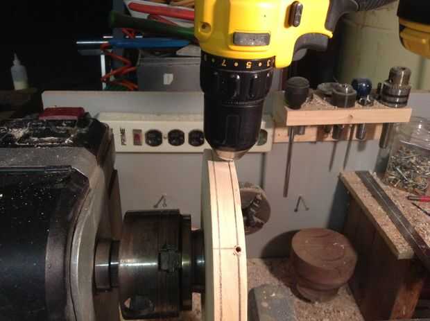 tengo 24 puntos de índice en mi torno. Quería 8 LED alrededor de él. algunas matemáticas rápido en mi cabeza me di cuenta de que cada punto de índice 3 tendrá una marca para perforar el agujero. Me dará 8 agujeros espaciados uniformemente alrededor del perímetro del platillo.