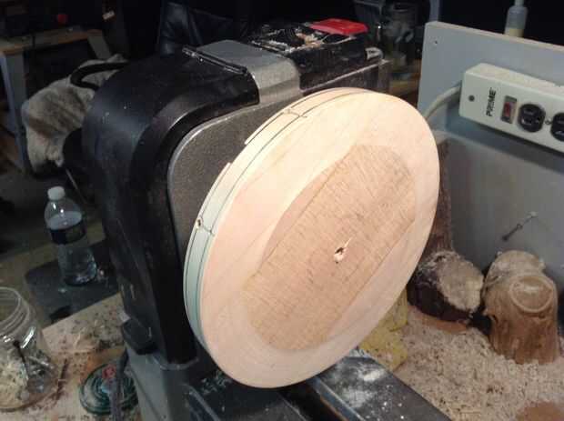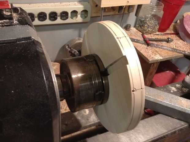 A continuación, mueva su herramienta de descanso al lado de la placa frontal y aplanar y alisar la parte superior del platillo. Yo también lijar con lija de grano 80.