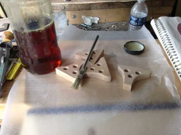 Acabado arena el tren de aterrizaje. Una vez hecho esto, usé un cepillo pequeño y había cepillado el tren de aterrizaje los agujeros con aceite de tung.
