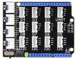 - Grove Arduino shield base, para la conexión de sensores. ( http://www.seeedstudio.com/wiki/Grove_-_Base_Shield )