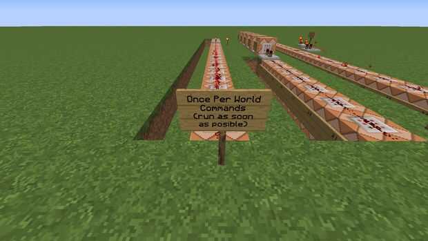 Aquí están el 1r sistema de bloques de comandos que ejecutar el juego, estos bloques de comandos sólo necesitan ser funcionó una vez para configurar los equipos, tableros de juegos y reglas. están rotuladas con el número de 2 números cada uno el número 1 representa el paso, el número 2 representa el número de comando.