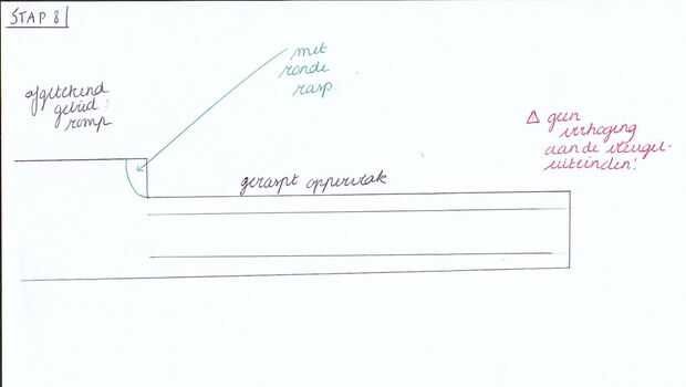 Bij de overgangen naar de overgelaten gebieden, die werden afgetekend en stap 6, wordt met een ronde escofi na het verhoogde, uitgelaten deel verbonden.