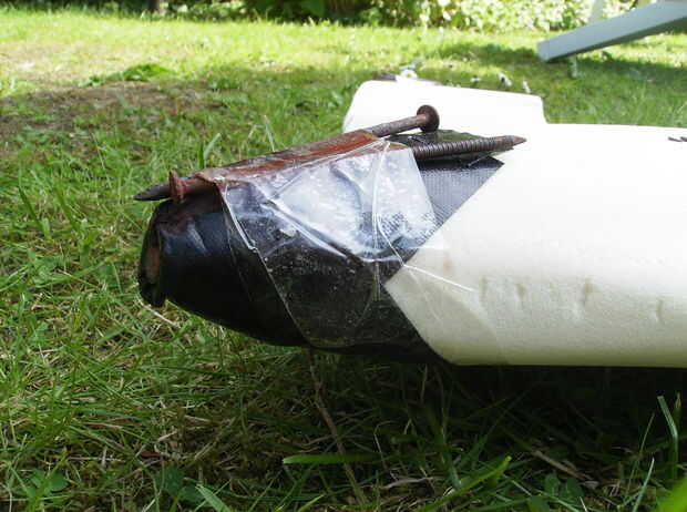 Het mejor kan je de neus van je modelvliegtuig mooi en subtiel afplakken met wat ducktape. DIT zorgt voor wat peso vooraan en es beter als stevigheid bij het vallen van je modelo tijdens testvluchten.