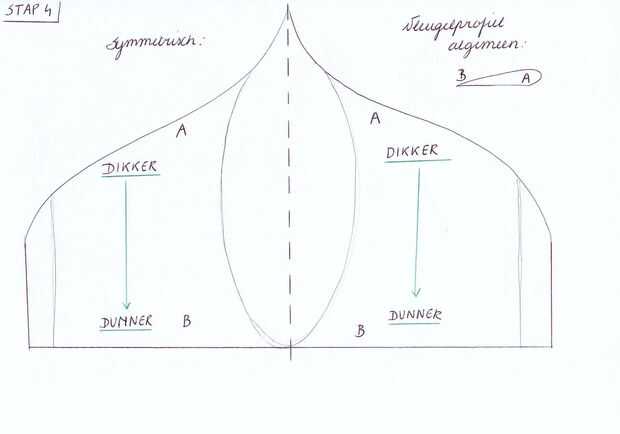 -Zorg ervoor dat een druppelvorm ontstaat: het profiel van de vleugels está dikker aan de neus en verdund naar het achterdeel dedo del pie.