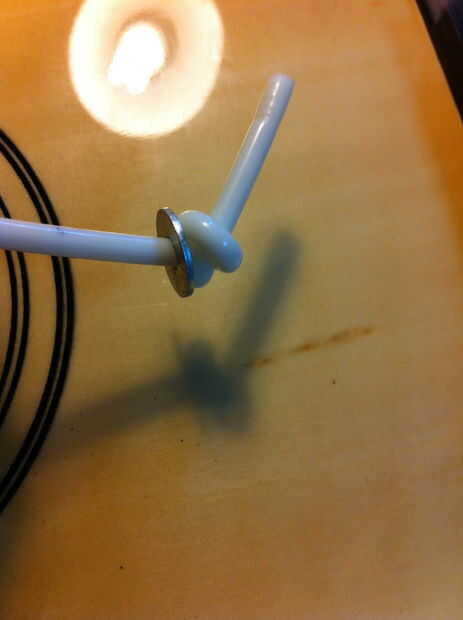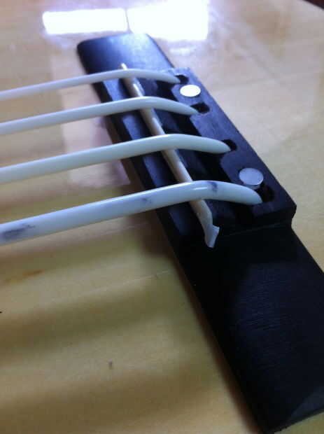 Nota: Las marcas negras sucias en la cuarta cuerda son el resultado de no esperar que la tinta se seque antes de colocar la cadena en el puente.