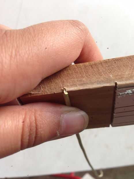 Corte el alambre de traste en secciones largas de 4 cm y los bordes de arena. No pegar todavía.