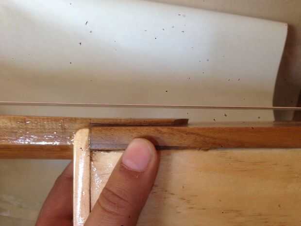 Secuencia el uke en esta etapa. Para evitar que las cadenas de corte en la madera, tienes que cortar dos piezas de acrílico como esta y pegarlo por debajo de los orificios y en la parte superior como se muestra en la imagen.