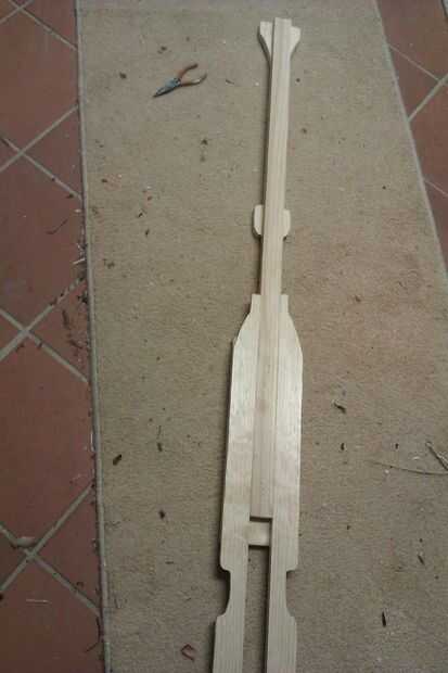 Después de pegar las piezas de la espalda junta la paleta se le dio un poco de forma externa. Fui bastante cerca de la forma final que fue después en la hoja pero, como se verá más adelante, fue principalmente por lo que tuve una pista justa en cuanto hueco fuera del centro y luego por lo que pude saber cuánto me podría tomar cuando hacer la conformación final. Realmente debo limpiar la suela de ese avión un poco mejor.