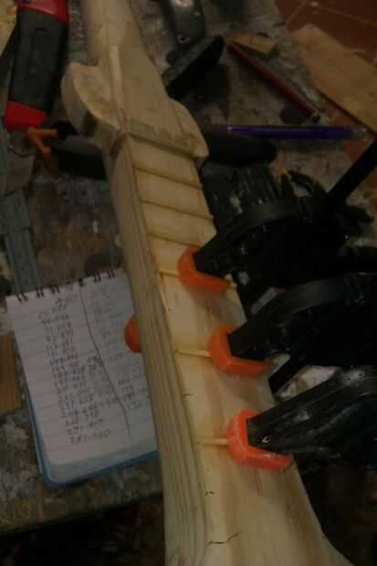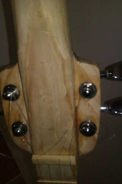 Todo de arena y hace un "ajuste en seco" antes de barniz para asegurar que todo va a ir muy bien juntos. Me hizo una secuencia de la prueba 20 lb línea, dándole estilo tahitiano tuning para probar el sonido y asegúrese de que no había conseguido la separación de traste mal. Probablemente fue un error como pasó la siguiente semana o tan jugando en lugar de acabado.