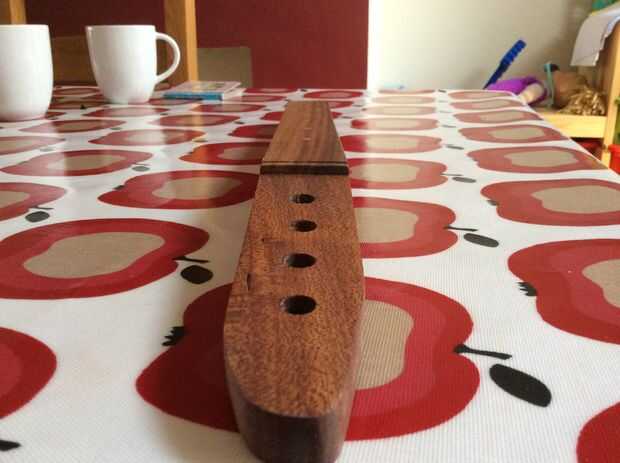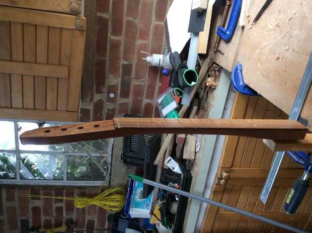 El cuello siempre iba a tener un aceite de acabado. Me gusta la sensación de madera natural, no laca o barniz y he encontrado en el pasado que se acumula una gran cantidad de fricción entre mis manos y un acabado de barniz. Yo regularmente la arena abajo mi cuello guitarra barnizada para hacerlos bien jugar, etc. esta construcción tenía que ser un final del lustre bajo. Aceite de acabados, he leído, permiten la sensación de la madera y todavía proporcionar la protección.