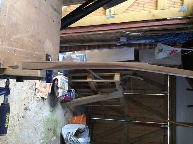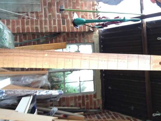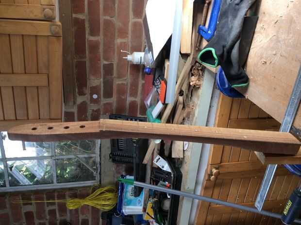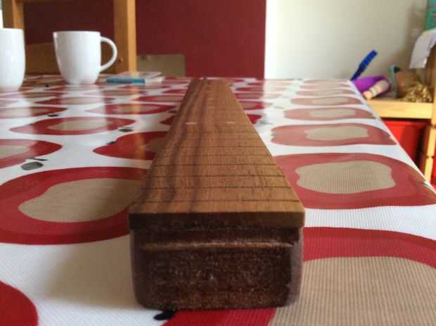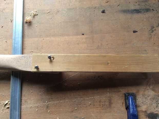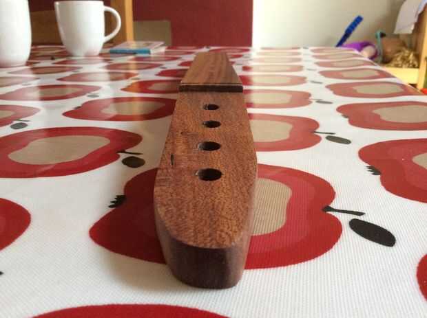 Construir un soporte de madera atornillado a los orificios del cuello y sujeta el cuello vertical a la banca. Entonces liberalmente apliqué el aceite con un paño sin pelusas hasta que la madera fue brillante y el aceite estaba sentado en la superficie sin conseguir empapada hacia arriba.