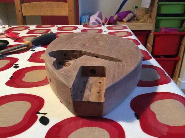 Donde he sido descuidado manejo del cuerpo es accumlated algunos golpes, por lo que éstos se llenarán. Hubo una gran ding en particular que pensé que necesitaría clasificar hacia fuera cerca el pote de volumen donde la guía del router pasa sobre el agujero de la maceta.