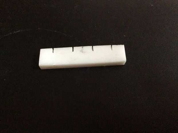 Una buena estimación es el ukelele, entonces trabajaba en una cadena en una prensa de tiempo abajo en el tercer traste de la secuencia. La cadena va a tocar el segundo traste y debe existir una holgura en el primer traste. Desea establecer la ranura de la tuerca a una altura que un espacio similar en el primer traste cuando la cuerda está abierto y todavía. Esto tendrá varias iteraciones para obtener derecho pero es fundamental que hacer.