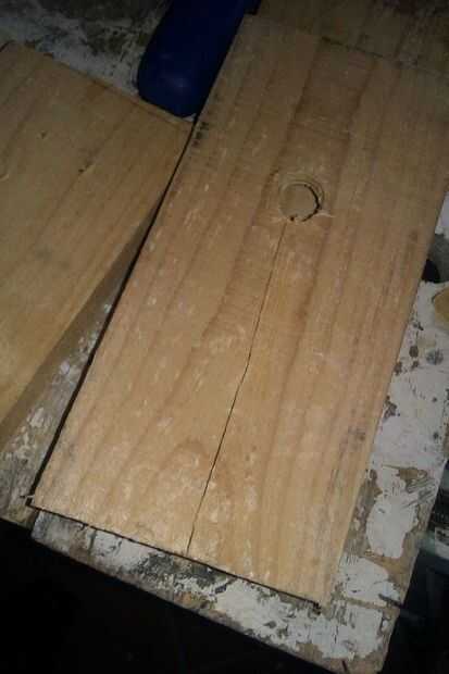 El pegamento en la parte posterior - (no estoy seguro por qué mina decidió romper) corta la forma, plano y arena y liso completamente. Fui todo medieval en la mía con una lijadora de banda.