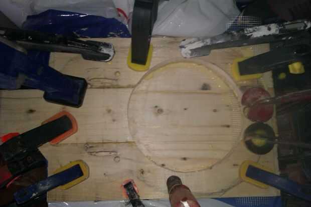 Después corté la forma de usar ukelele mi plantilla vio, lo siento olvide tomar foto, pero se puede ver consumado buscarlos como al final. Como se puede ver en las siguientes imágenes la línea exterior es aproximadamente una pulgada fuera de ese hueco interior he creado (no seguir exactamente - acabo de ir para una mirada agradable...