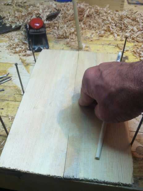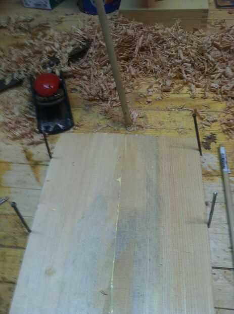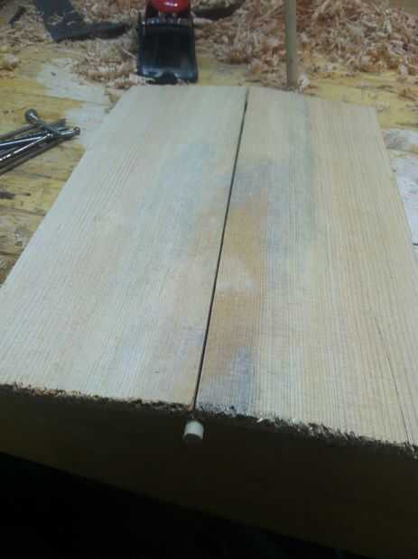 Más tarde encontré una plataforma hecha de algún tipo de pino de abeto tal vez con un grano aserrado de 1/4 real apretado esto debe hacer una buena tapa. Me uní a las piezas mediante un pasador colocado bajo los tableros y clavos conducir a lo largo de los bordes exteriores después de separarse de pegamento en los bordes he quitado el palo y puso un poco hacia abajo de la presión en las dos piezas las uñas mantenga lo suficientemente apretado para un buen porro. esto creo que es la mejor forma a la madera blanda