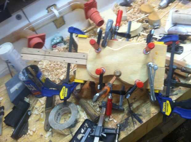 Ahora esto no es un Instructable explicada a través de imágenes y pasos, lo siento por eso.Sin embargo en el video verá todo el proceso de lijado de la madera, de espesor madera de flexión en una tubería caliente, que forma el cuello y hacer los sint