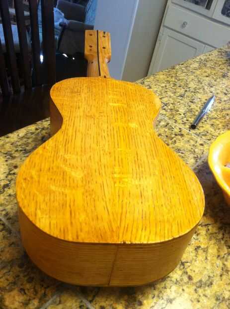 Ahora esto no es un Instructable explicada a través de imágenes y pasos, lo siento por eso.Sin embargo en el video verá todo el proceso de lijado de la madera, de espesor madera de flexión en una tubería caliente, que forma el cuello y hacer los sint