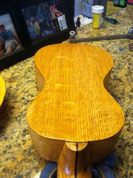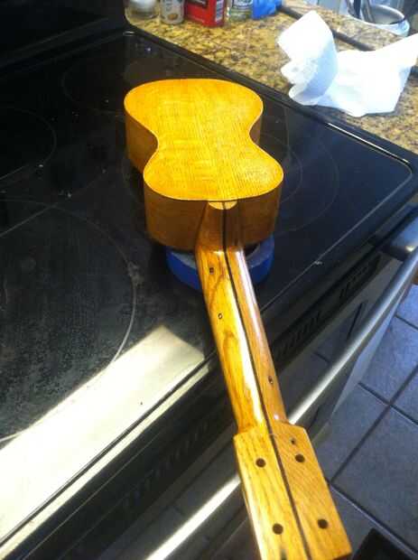 Ahora esto no es un Instructable explicada a través de imágenes y pasos, lo siento por eso.Sin embargo en el video verá todo el proceso de lijado de la madera, de espesor madera de flexión en una tubería caliente, que forma el cuello y hacer los sint