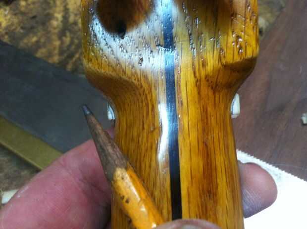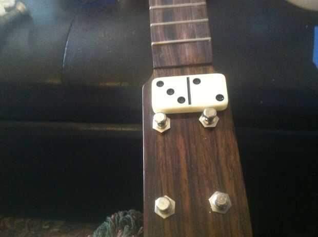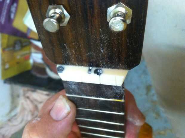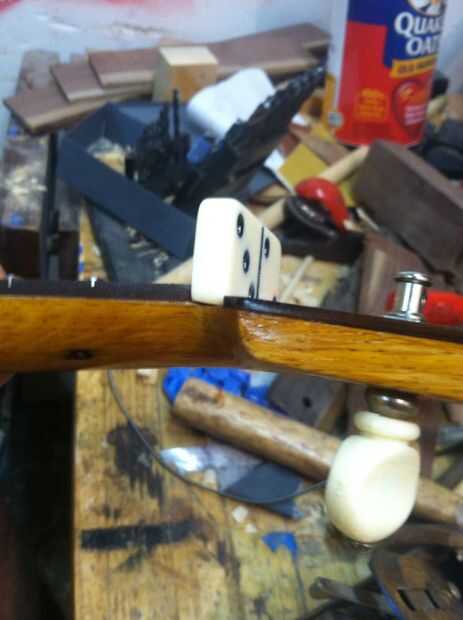 Usé un domino de corian para la tuerca del corte hacia abajo por supuesto. Alguien me dio una silla de hueso que habían cortado demasiado pequeños para una guitarra en el puente