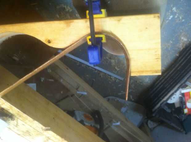 utilizando un pedazo de 3/4 "hierro tubo con un soplete de propano dentro y empapar la madera lateral en el agua por un rato doblar los lados. Con el uso caliente del tubo un poco de presión a vapor doble los lados. Esta es la primera vez he doblado el roble con otras maderas que toma mucha agua para doblar pero con roble aprendí más rocían en más difícil era doble. Lecciones aprendidas el tubo debe ser alrededor de 150 grados a vapor de la madera. Demasiado cool y siempre toma demasiado caliente y quema la madera no se necesita mucho tiempo para averiguar qué tan alto a la antorcha. Utilizar una pieza delgada de metal como un respaldo al doblar lados ayuda a sostener el vapor de la madera y tiene incluso la presión en la madera. Sólo ir lento y es bastante fácil. Curva un poco comprobar contra el molde y doblar algunas más. Me tomó alrededor de una hora a los dos lados de la curva. Me gusta mojarlos abajo buena después de doblar, abrazadera en el molde y deje que seque durante la noche