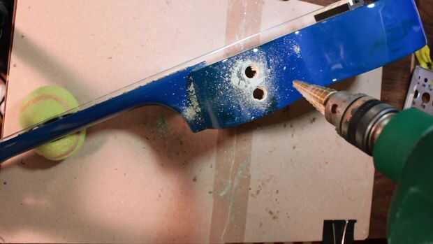 He cortado abierto una pelota de tenis y utilizado para fijar el ukelele.