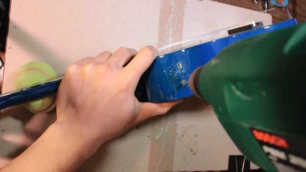 Después de tomé algunas pintura acrílica azul y pintado en los agujeros.