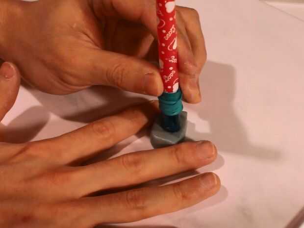 Cuando llegamos a la parte inferior, soltar el elástico para liberar la arcilla.