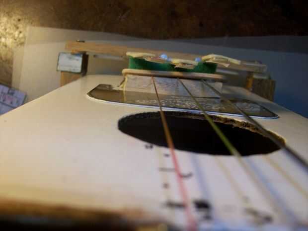 Artículo por último uso 11-dar las claves de una parada hacia abajo la sensación al presionar a las cadenas. lugar pega la madera al lado del puente pero asegúrese de que las teclas en contacto con la cuerda primero.