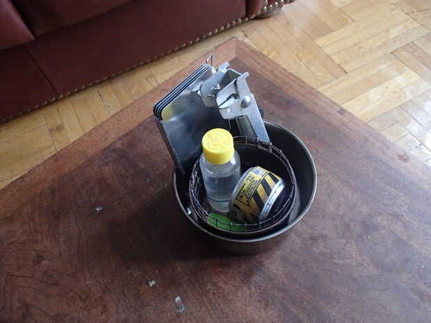 Como se puede ver, este sistema de cocina casi todo tiene un florecimiento cook backcountry deba 'áspero,' pero sin el peso del fregadero de la cocina.