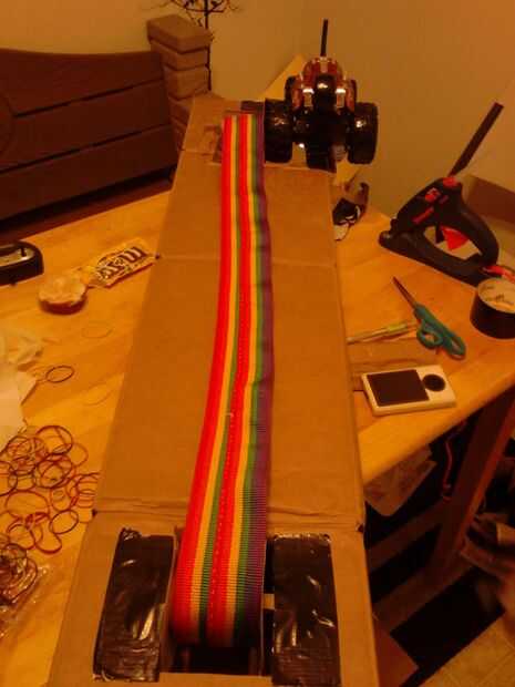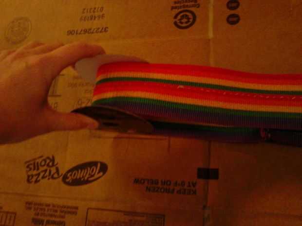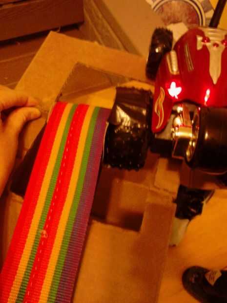Nota: la correa no funcionará si su estirado firmemente. necesita cierta holgura. Tuvimos que cambiar el tamaño de los agujeros para darle más holgura.