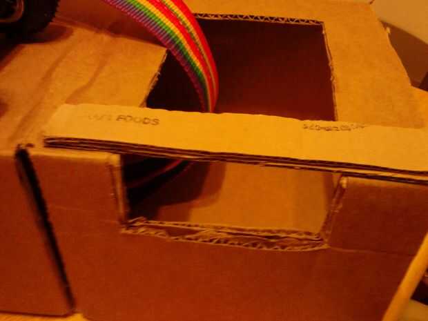 Corte una abertura en la parte superior de la base frente a la cinta transportadora donde las cookies de caca caerá en fuera de la cinta transportadora. (foto 29)