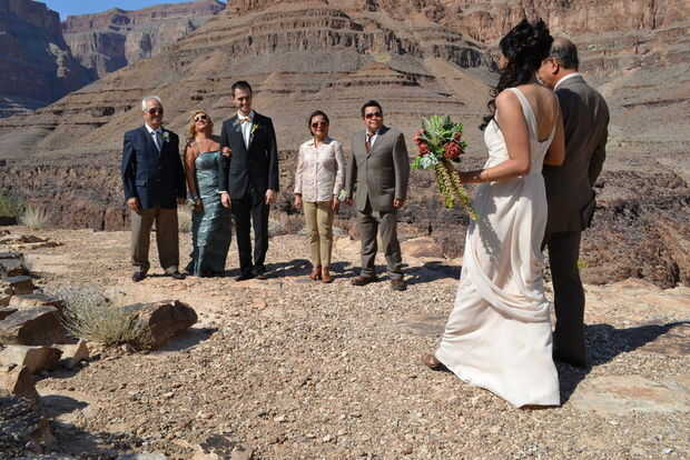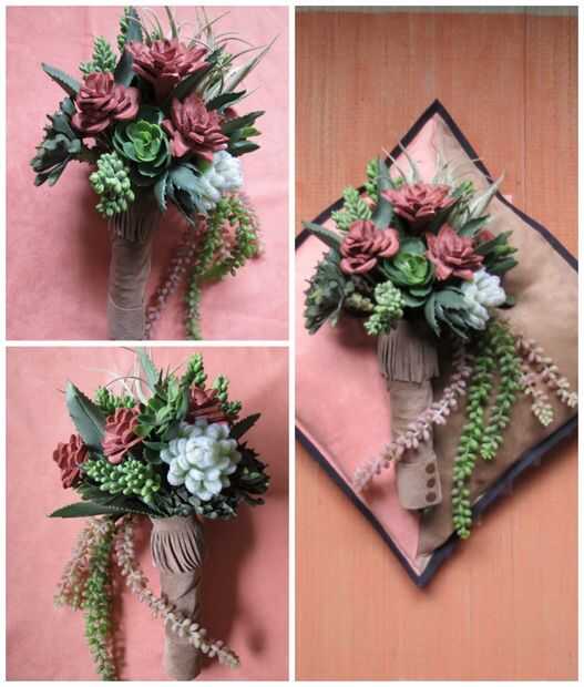 Acorde al entorno tierra del gran cañón, decidí usar terracota como uno de los principales elementos decorativos de nuestra boda. Hice de suculentas de la arcilla de aire seco terracota para mi ramo de flores (en combinación con artificiales de los succulents), flor en el ojal de mi esposo y nuestras invitaciones en caja.